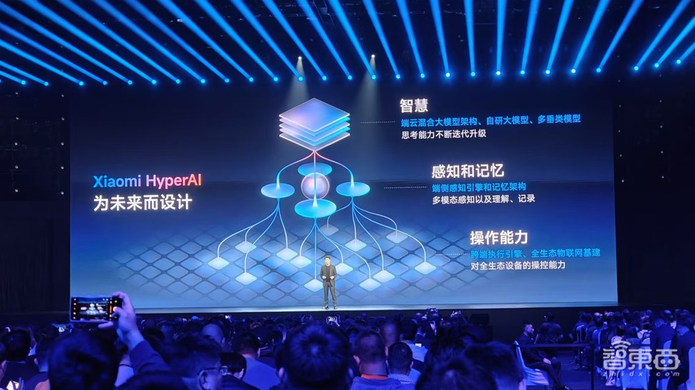 智慧方面,小米采用了端云混合的大模型架构,开发了关键大模型和多个垂直模型,可以迭代升级AI的思维能力。