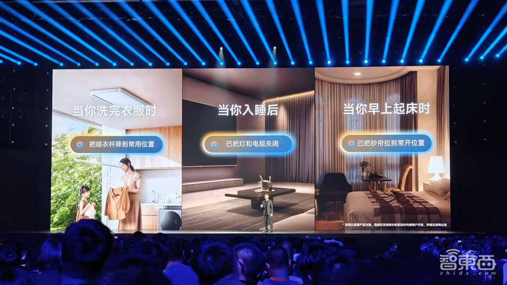 小爱可以在我们洗衣服的时候把晾衣杆降到一般的位置,睡着的时候关掉灯和电视,起床的时候把纱窗拉到一个常开的位置。