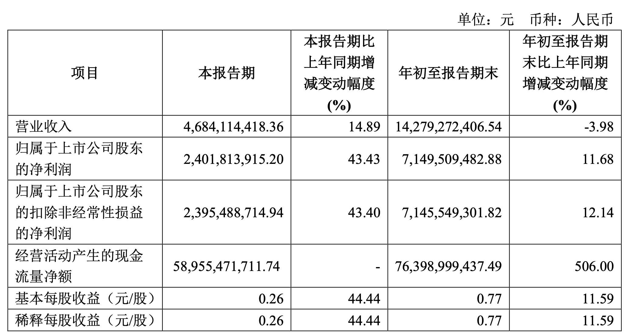 十月二十九日晚,招商证券发布第三季度报告,前三季度净利润142.79亿元,同比下降3.98%;归母净利润71.5亿元,比去年同期增长11.68%。第三季度净利润为24.02亿元,比去年同期增长43.43%。从2024年初到第三季度末,招商证券基本上每股收益为0.77元/股。