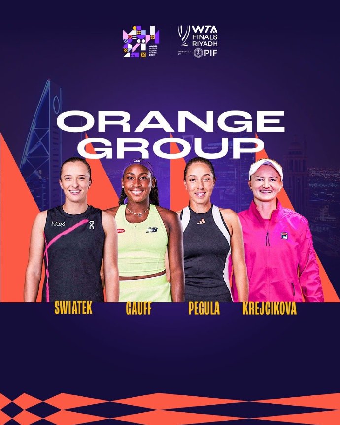 除了郑钦文的紫组,另一边的橙组还有四名球员,分别是斯瓦泰克、高芙、佩古拉和克雷吉茨科娃。半决赛和决赛将在预选赛阶段进入半决赛后进行。