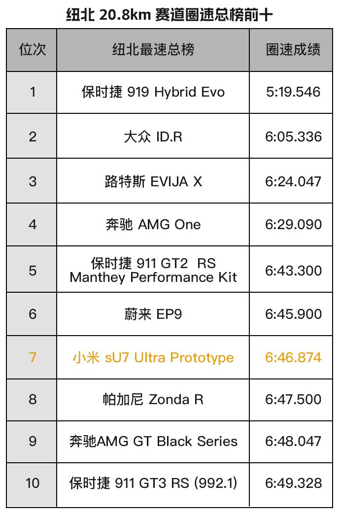 根据源媒汇整理,如果圈速再提高7秒,小米SU7。 Ultra Prototype将超越蔚来EP9、迈凯轮P1 XP1 LM 保时捷911Prototype和保时捷 GT2 RS MR(991.2)等车型,仅次于路特斯、大众、保时捷(另一款原型车),在纽北无法合法上道的车型中排名第四。