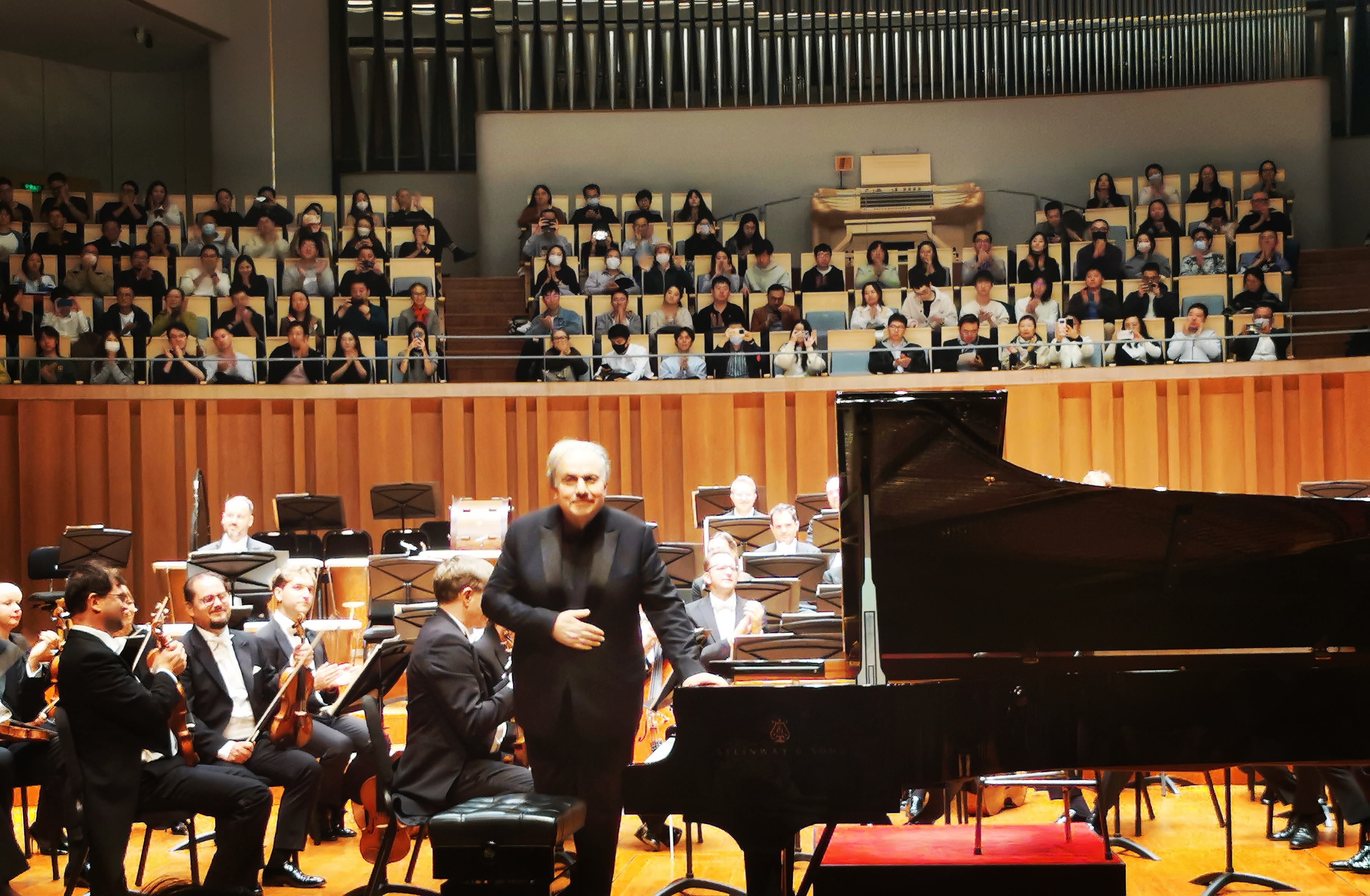 钢琴家叶菲姆·布朗夫曼接受了观众的掌声问候。拍摄 王诤