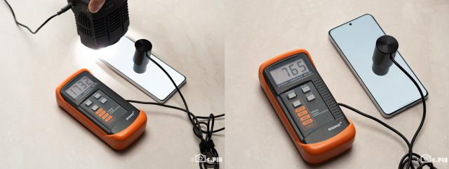 我们测试了手动屏幕的最高亮度。 765nit ,高峰亮度在强光下为 1732nit 。尽管跟随官方数据( 800nit/1800nit )有一定的进出,但是这种表现放在旗舰机里也算是领先的水平,在户外强光下看内容或者导航的时候不需要用手遮住屏幕。
