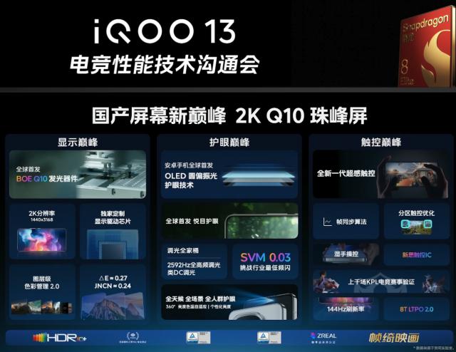 而且这个屏幕是 iQOO 与京东方联合定制,我只能说国产屏幕的确站起来了,光屏的特性可以列出满满一页。