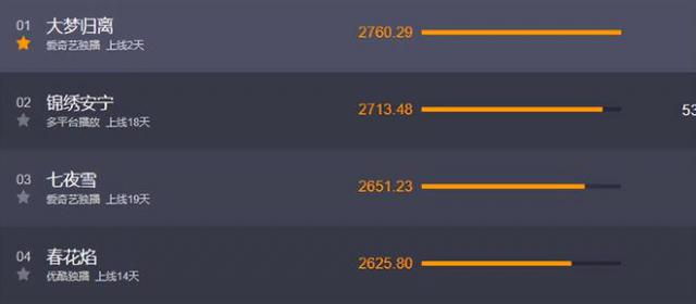 作为郭敬明导演的另一部大作,《大梦归离》一上线,热度就辗压《锦绣安宁》,成为热播第一。