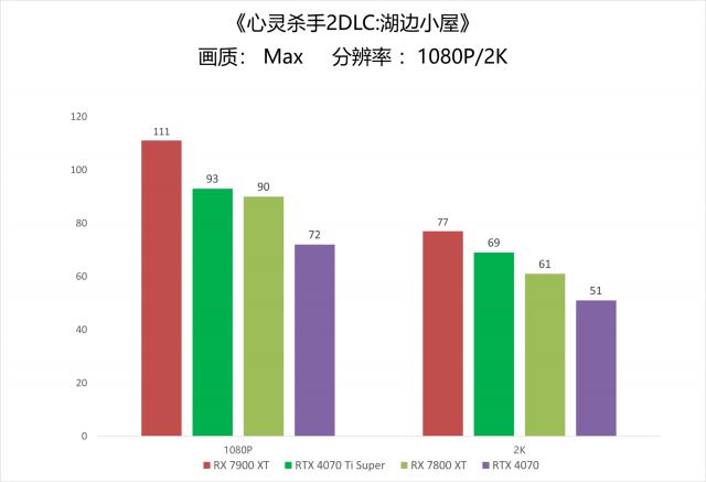 “湖边小屋”DLC 这是一次节奏紧凑的心态恐怖体验,为《心灵杀手》 这次精彩而奇怪的探险之旅画上了令人满意的句点,沉浸式体验也需要强大的硬件设备作为支撑。以下是我们使用的 RX7800 XT、RTX4070 两张显卡,在《心灵杀手》中 2DLC : 在最高画质下,湖边小屋进行了 1080P 和 2K 帧数表现测试。