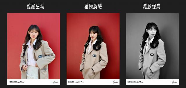 光影人像大模型的搭载,荣耀 Magic7 该系列完成了支持雅客人像拍摄的全焦段。客户可以根据自己的需要,自由选择生动、质感、经典的段雅客风格,创作人像作品。