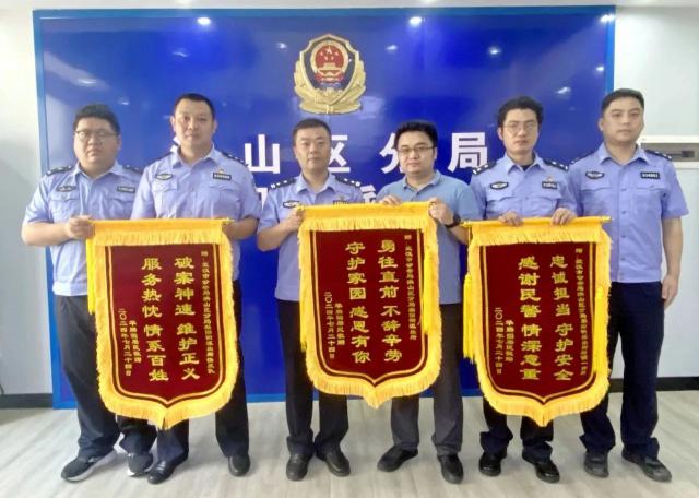 "谢谢警察帮我找回丢失的财物,虽然钱不多,但是你们都尽力了,我很感动!"今年夏天的一天,吕先生来到梨园派出所,向朱博等办案民警送去三面横幅表示感谢。此前,7 月 22 一天早上,吕先生报警称,家中床柜内的1000多元现金不见了。朱博领队前来现场调查,通过小区监控录像跟踪犯罪嫌疑人。22 日早上 11 当时,警方锁定了嫌疑人的落脚点,并于下午锁定了嫌疑人 1 时间抓获,追回被盗现金。