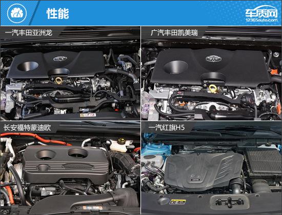 从外部配置来看,亚洲龙虽然是四款车中价格最高的,但其性能却略显疲软。凯美瑞,蒙迪欧和红旗 H5 表现相当,配置相互胜负,整体差别不大。配置前排 / 多层隔音玻璃后侧窗,让凯美瑞有更好的乘坐体验。