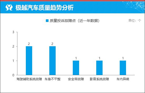 通过对极越汽车旗下车型近一年的投诉数据进行筛选,可以发现故障点比较分散,全部来自极越汽车 01 模型。由于投诉故障点都是个位,不排除是个例问题。极越作为一款全新的车型, 07 车身技术、功能配置等方面肯定会有所提升,但暂时可以认为出现上述问题的概率很低,但具体情况如何,需要使用一段时间才能得出结论。