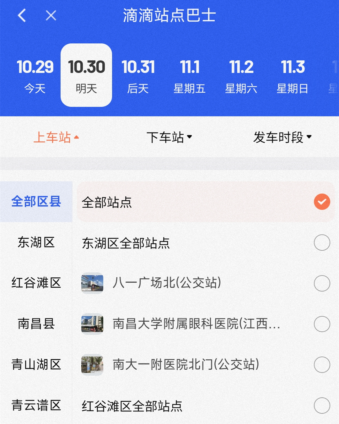 乘坐“网站巴士”,乘客可以自由选择最近的上下车网站。购票页面截图