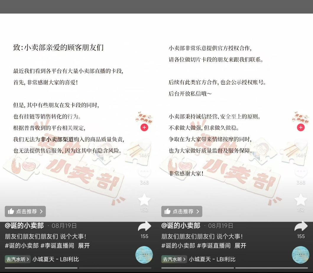 小杨哥曾经声称“切片系统化”是他发明的,但与其说是系统化,不如说是产业化。通过切片授权,更多的人可以编辑小杨哥直播的切片,自己发布,同时在切片视频中挂小黄车。这些产品链接一般都是小杨哥送的。