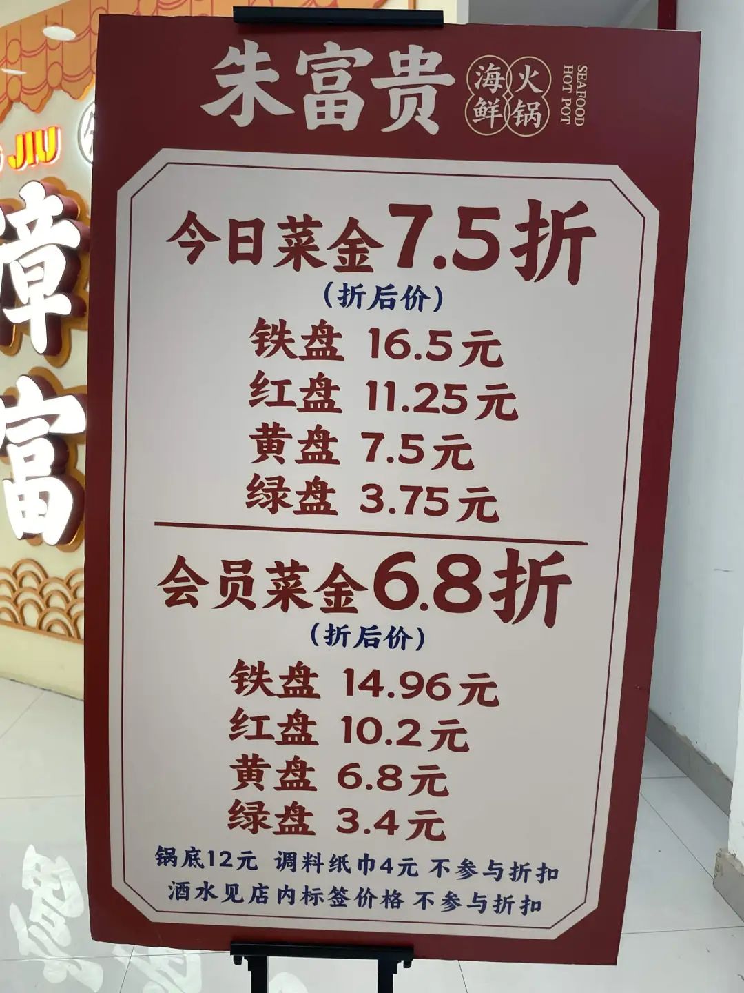 这些餐厅大多以餐具的颜色来区分产品的价格。比如朱富贵火锅的价格体系就是5元的绿色板块,10元的黄色板块,15元的红色板块,22元的铁板块,对于普通用户和会员来说都有不同的折扣。顾客可以自由购买整个过程,饭后根据板块计算价格。