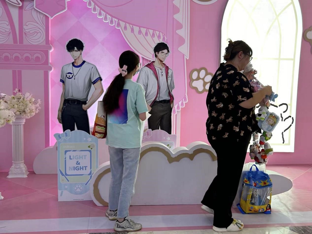 在调查过程中,每当研究人员问及“你喜欢哪个IP”时,受访者总是滔滔不绝地讲述自己喜欢的IP中的人物。“他有积极的三观,尊重人,对你好,比‘三维’世界里的人更完美。”在静安大悦城的B-gir游戏《光与夜的爱》线下闪光现场,山芋热切地描述了她最喜欢的角色“萧逸”。