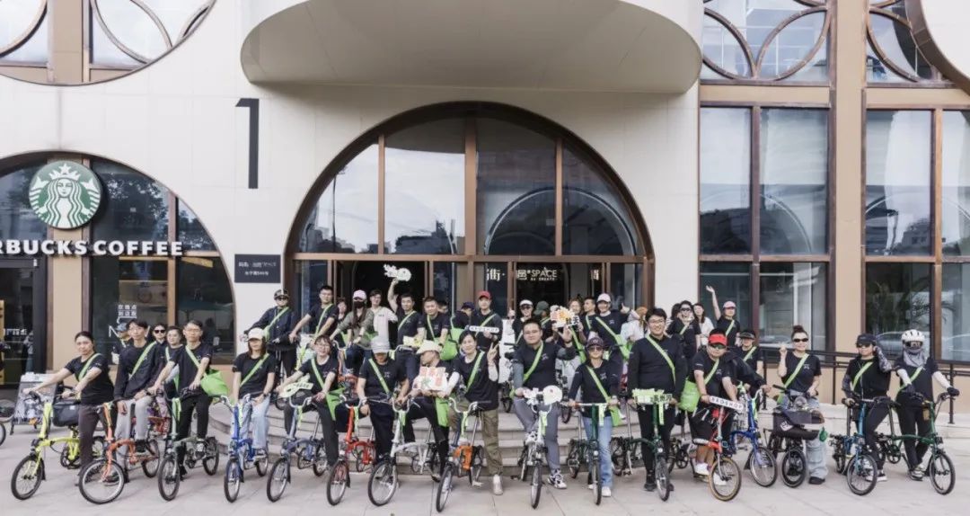 下午1点,40多名骑自行车爱好者聚集在尚街创邑SPACE,在工作人员的指导下收到自行车并补充。经过自行车训练和热身运动,他们满怀期待地出发,迎接苏州河长宁段的美景。