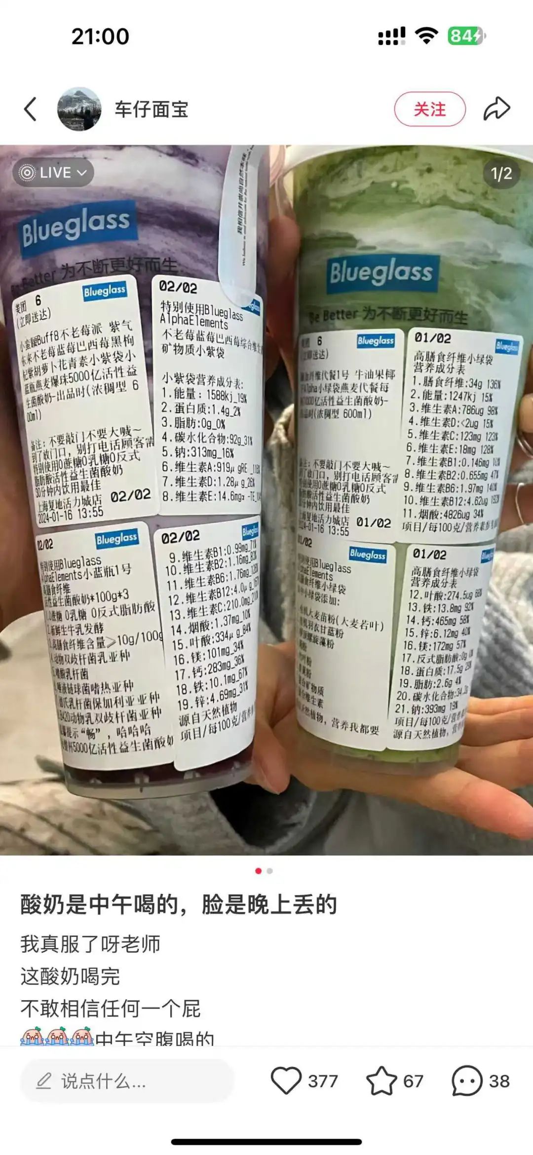 线下商店制作的酸奶也是如此。即使Blueglass的酸奶瓶上覆盖着营养元素,大多数消费者也只会把它当成健康的下午茶,而不会长期坚持喝,看看它能给身体带来什么变化。