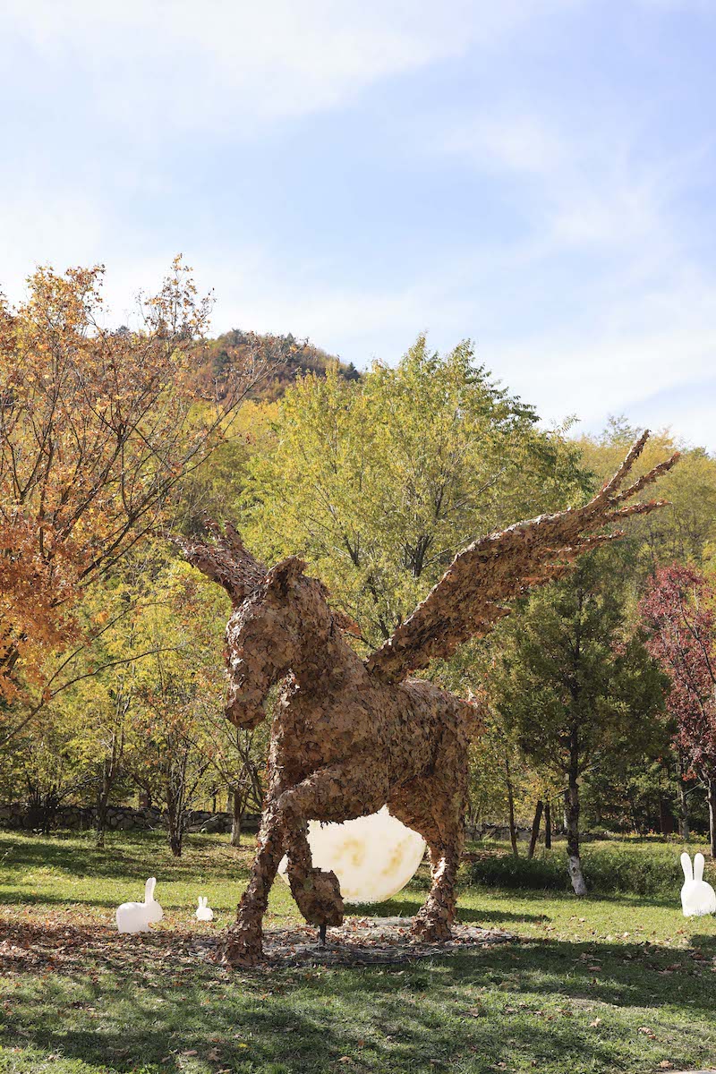 10月30日,“秋叶艺术节”在九寨彩林举行。艺术节上,九寨查沟点缀着13件“枯叶兔”出差时收集的秋叶大型设备。这些为九寨量身定做的秋叶雕塑,源于当地独特的自然风光和悠远多彩的藏羌文化。