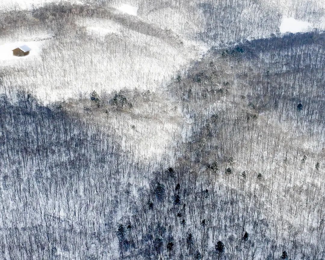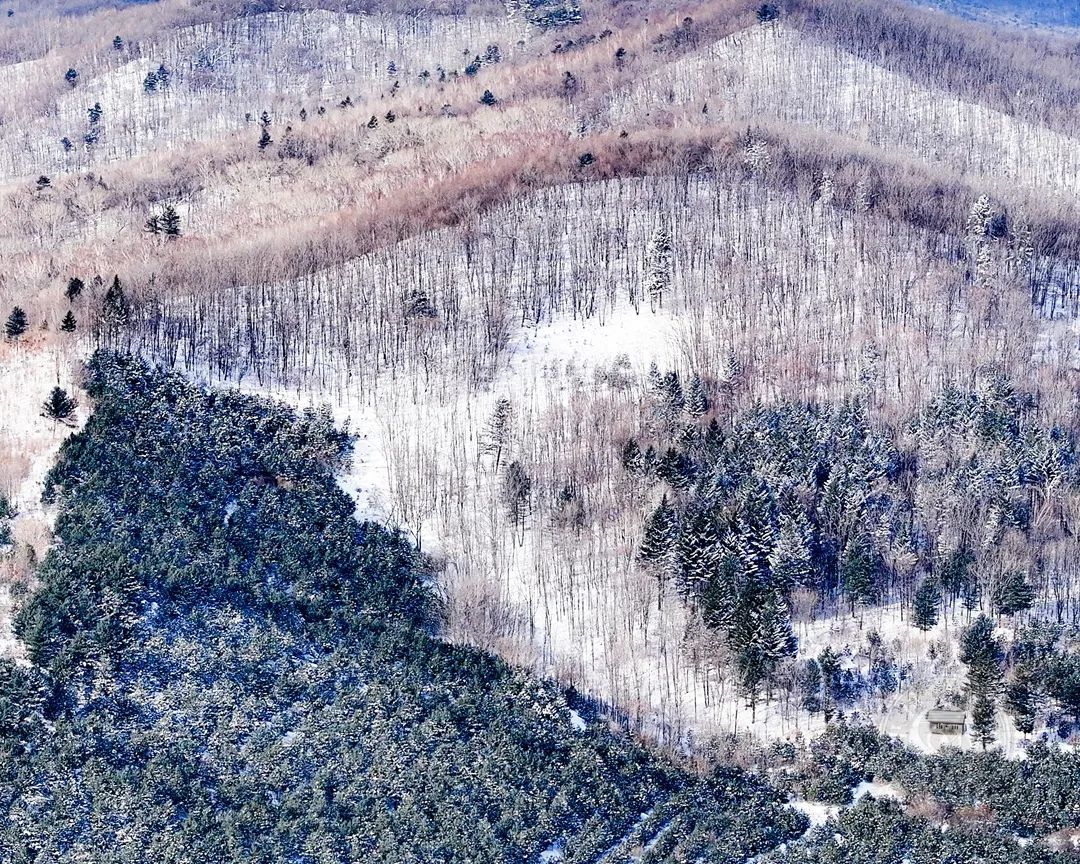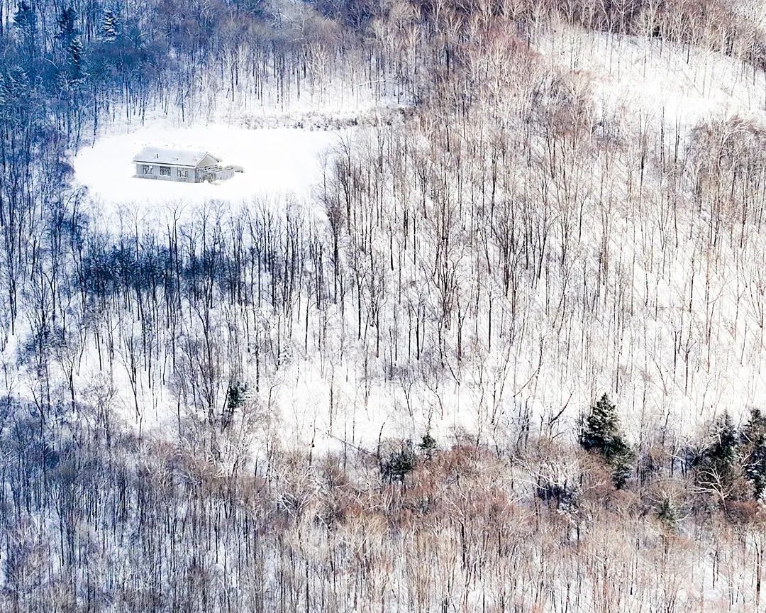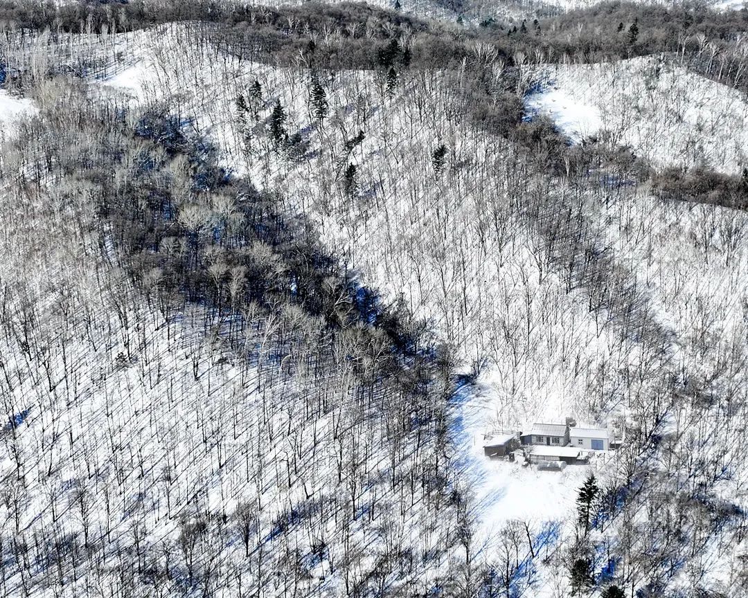 吉林雪山的自然景观极其壮观,雪山、冰河、森林和溪流共同构成了一幅美丽的画面。在这样的背景下,几栋造型独特的房子点缀其中,构成了一幅人与自然和谐共处的画面。