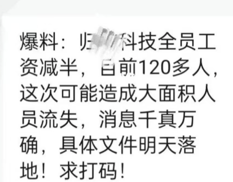 十月三十一日,市场上有消息称:“归芯科技全员工资减半,目前超过120人,这次可能导致大规模人员流失。”