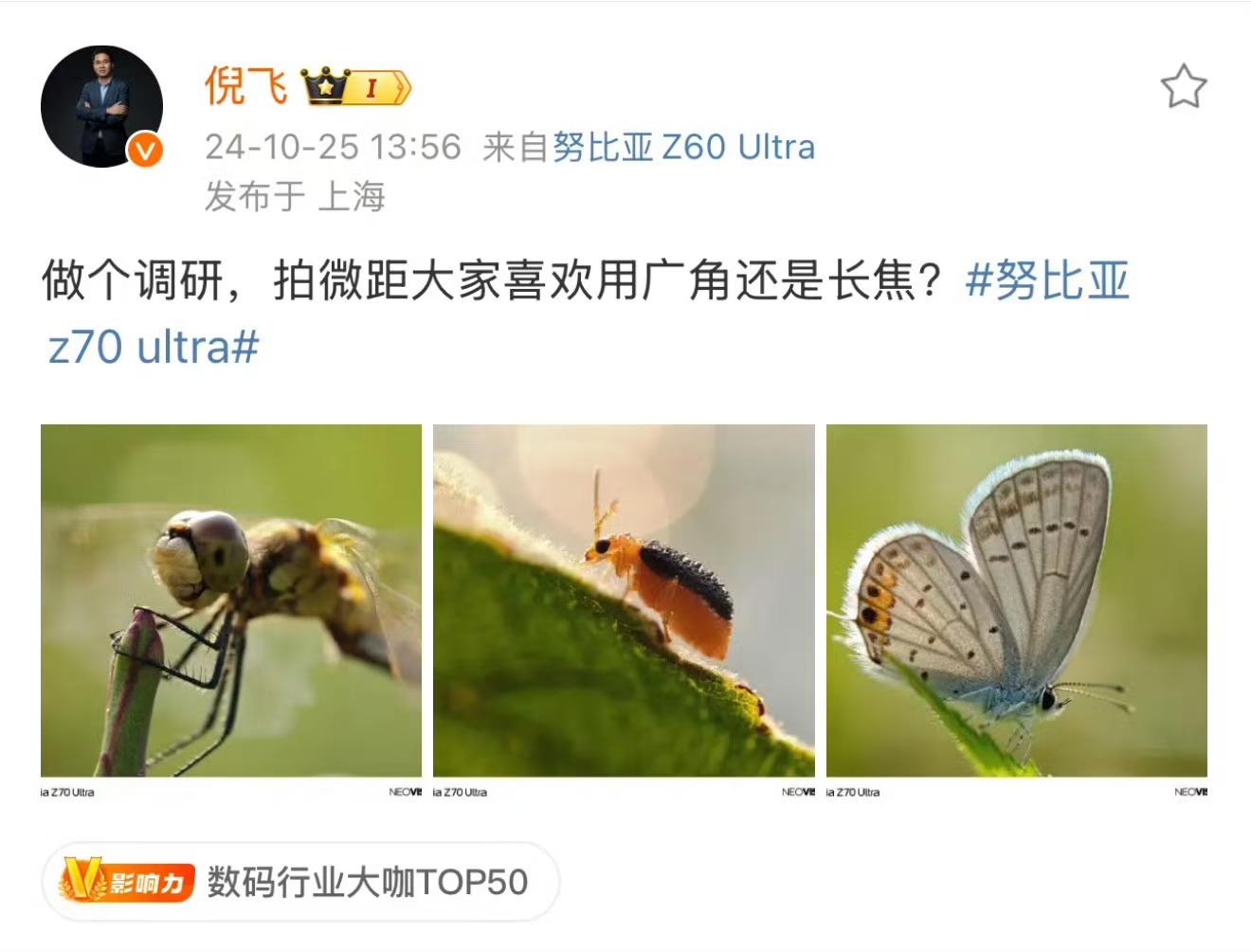 努比亚官方微博也发布了几张Z70 Ultra拍摄的微距照片,如果不出意外的话,这一代努比亚的长焦和长焦微距将是其图像产品的卖点之一。当然,真正的GT7 同时,Pro声称配备了120X AI高清长焦,看起来移动图像的长焦对决才刚刚拉开帷幕。