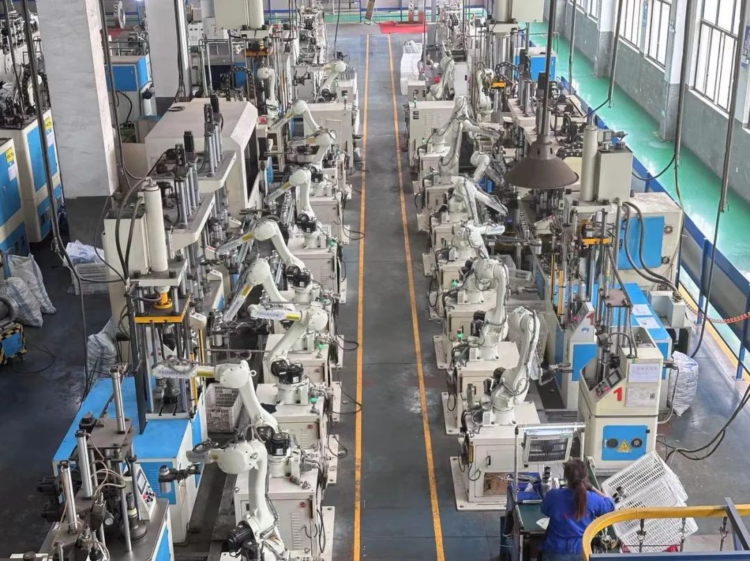走进飞剑厂,整个车间充满了流水线上机器的轰隆声。一排排整齐划一的机械臂正在为保温杯安装里胆,机械臂一起一落,一个里胆就安装好了。飞剑品牌负责人表示,该流水线自动化生产设备于2018年统一更换,是浙江省首条5G智能自动化生产线,不仅降低了人工成本,而且在数据监测中心一目了然地了解了订单的具体情况和生产环节。目前,飞剑厂区生产线的自动化水平已达80%。