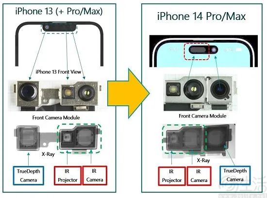 随着iPhone相关组件的进化,屏幕也从“刘海屏”变成了“药丸屏”。