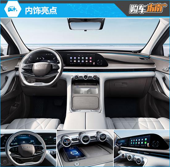 在内饰方面,新车以海洋为灵感,展现出波澜壮阔的自然之美。穿透式空调风口拉伸了视觉宽度,带来了更好的宽度感, 24.6 英尺超清晰智能曲屏提升了整体现代感。50 英尺 AR-HUD 虚拟化现实抬头显示能与车外实景相结合,带来更好的用车体验。讯飞发动机语音系统可控制 28 类 429 项功能,30 秒可以完成 20 持续指令。汽车系统是狮子 Lion5.0 并采用高通骁龙系统。 8155 芯片。