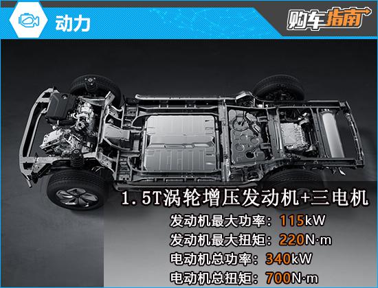 动力方面,新车配备雪豹四驱系统,采用四擎四驱结构模式。1.5T 混合动力专用发动机,最大功率 115kW、最大扭矩 220N · m。电动机是外置双电动机 后置电动机,电动机总功率 340kW、电机总扭距 700N · m;综合功率系统 455kW、综合扭距系统 920N · m。新车可提供 13 各种各样的解困情况 6 各种性能模式。续航方面,新车 CLTC 纯电续航里程为 200km,CLTC 综合续航里程 1400km,WLTC 最小荷电状态油耗 6.6L/100km。