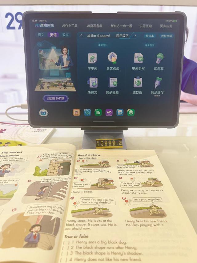 AI 学习机器正在变成“双” 11 “购物节热门商品。图为人民广场新世界城市商场学习机展位上的商品。