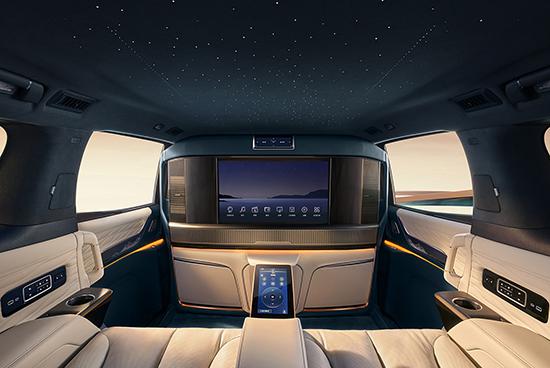 在内饰方面,新车的材质非常优雅。山水镀银真木饰品采用欧洲进口天然白栓木,树龄超过100年,辅以激光雕刻技术,完美呈现东方景观意境。第二排云感礼宾椅首次使用 12 座椅结构、坐垫和椅背都有自己的悬浮层设计。里胆采用母婴柔性纤维棉材料,具有优异的支撑和过滤效果。另外,新车还配备了别克和别克 Bose 全球首款联合开发后排名第一的倾听位置 Bose Executive Edition 悦尊音响系统,配置 2 平台数字功放和环布座舱 21 一个音箱,能为后排乘客提供更好的听觉享受。