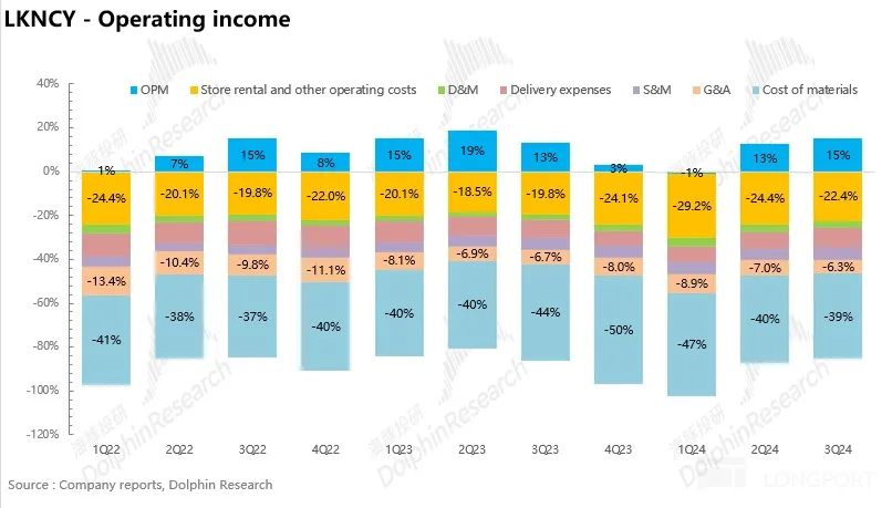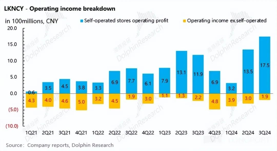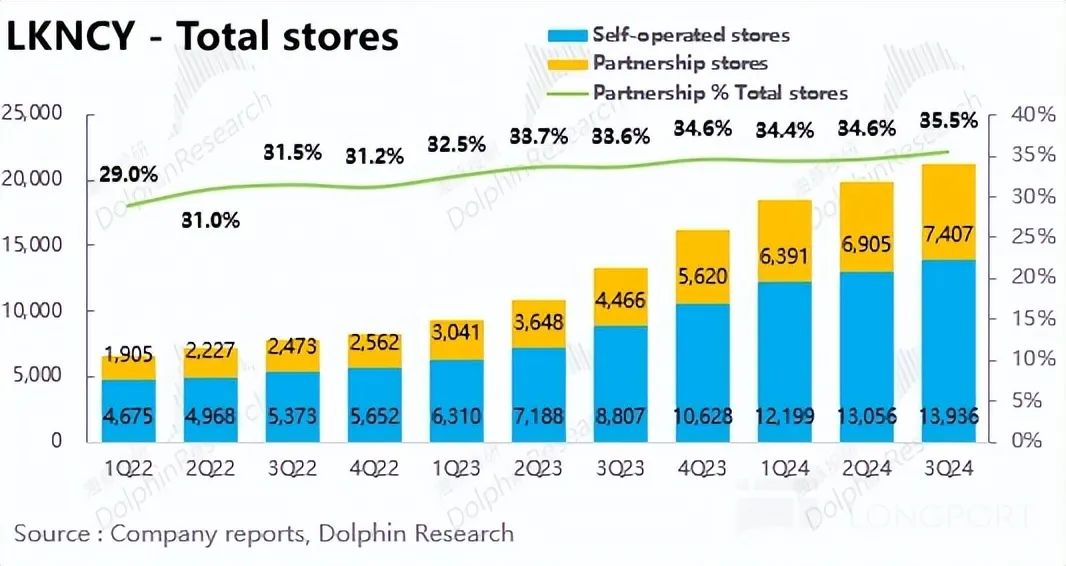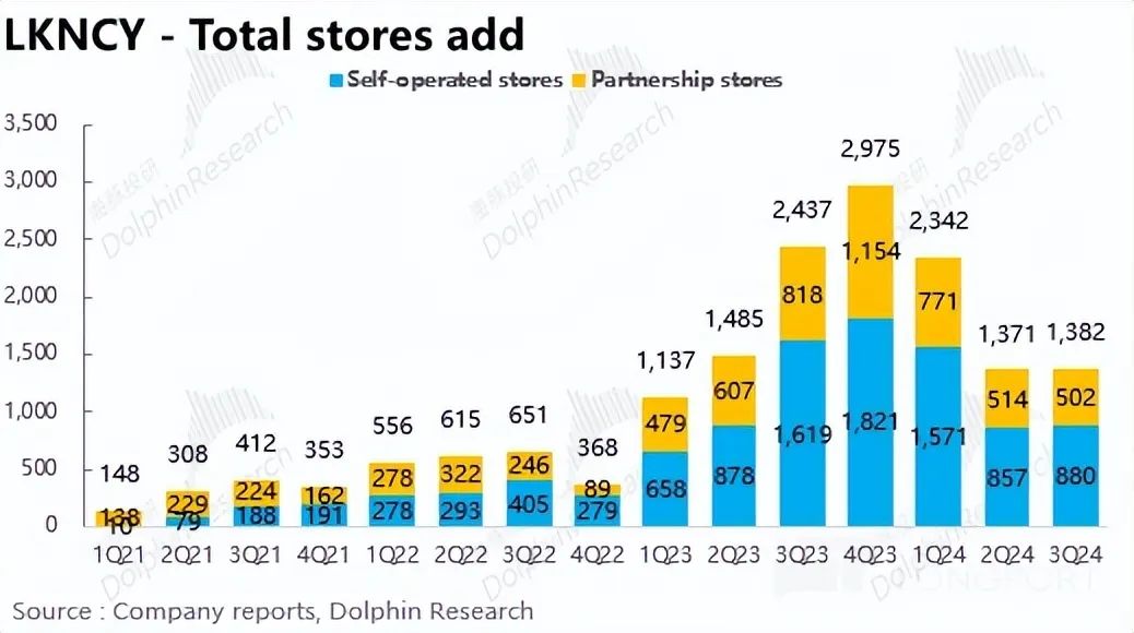 比如海豚君第一季度和第二季度的评价预期,瑞幸第三季度的开业速度持续放缓。。Q3 环比净新增 1382 家庭。其中直营店面 880 家,加盟店 502 在家里,海豚君认为,经过几年前的高速开业,一方面考虑到国内市场空间有限,另一方面,为了缓解新店对老店分流的影响,公司积极降低开店率是理性的。