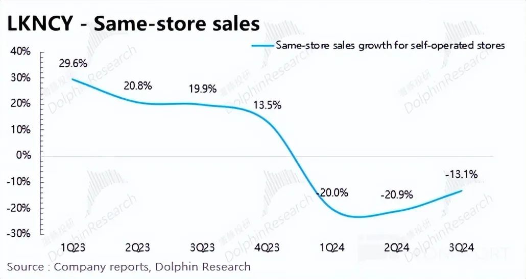 1)Q3 同一商店的营业额同比下降 与第二季度相比,13.1%收窄 7.8pct。海豚君认主要是由于开店速度放缓,新店分流影响减弱。另外,根据我们的计算,直营店单店的收入和利润在旺季 在减少补贴的背景下,也逐步进步,实现 55 万元、13 一万元,利润率修复到 23%。考虑到去年同期,瑞幸推出了一款爆款酱香拿铁,无论是杯量还是杯量。 ASP 从数量的角度来看,所以海豚君感觉到了。 Q3 商店的收入修复情况比较好。