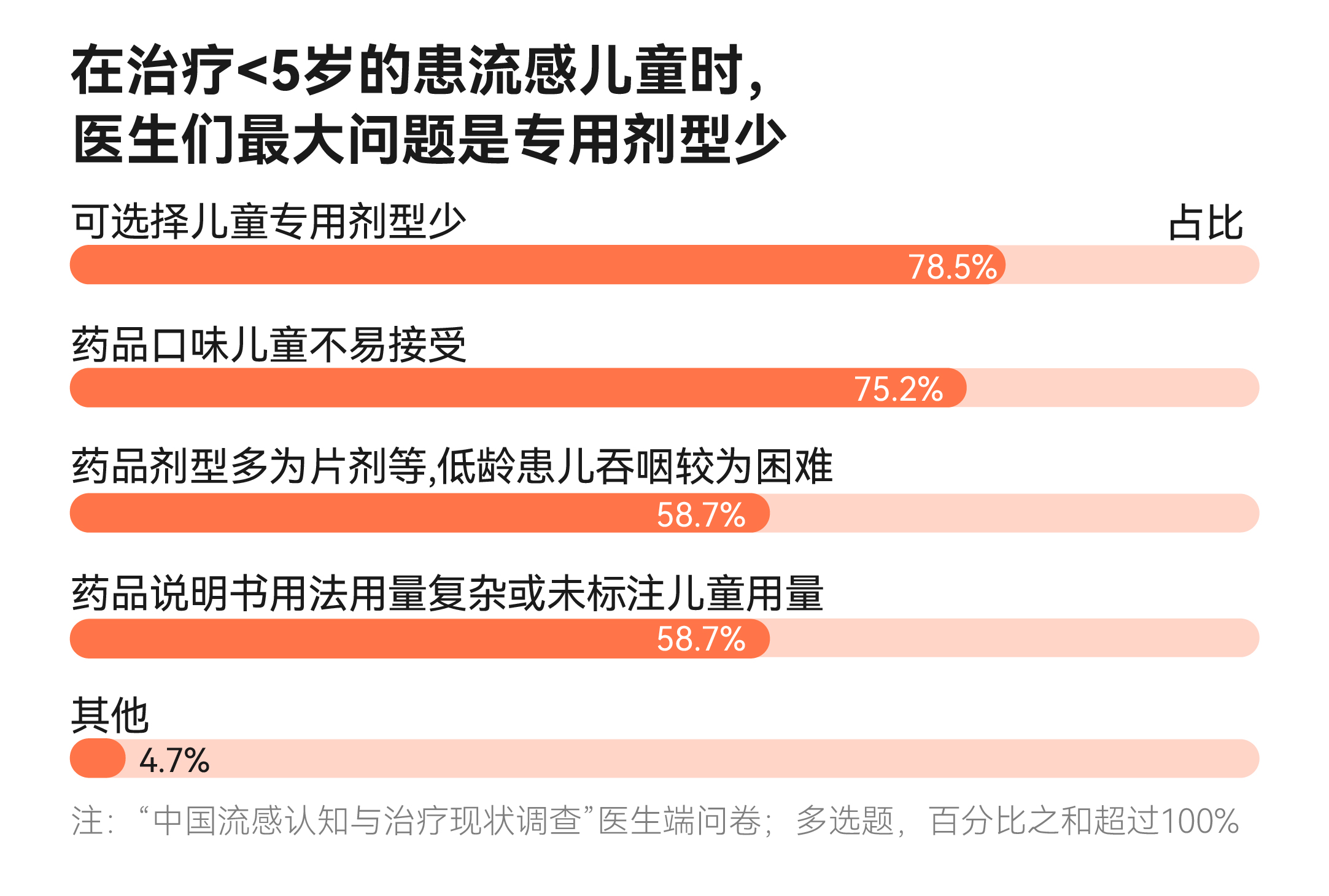 此外,许多医生呼吁市场推出更多适合儿童的创新药物制剂,以满足我国儿童流感治疗的实际需要,因为儿童在服药时剂量难以控制,服药依从性差。