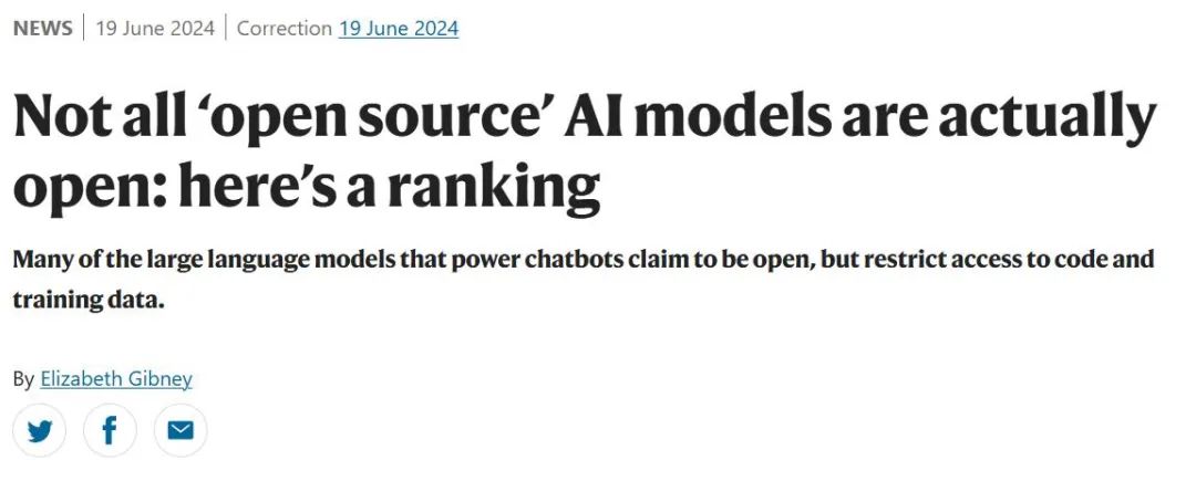 巧合的是,今年六月,《Nature》一份报告指出,很多科技巨头声称自己的AI模型是开源的,但实际上并不完全透明。这些模型的数据和训练方法通常不公开,这种行为被称为 开源漂白,严重阻碍了科学研究的可重现性和创新性。