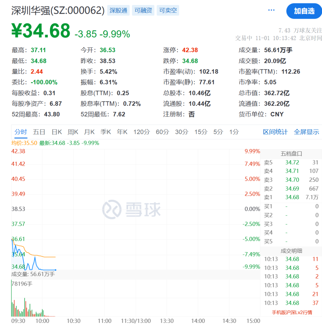 在上海贝岭、深圳华强盘中反复触及跌停。