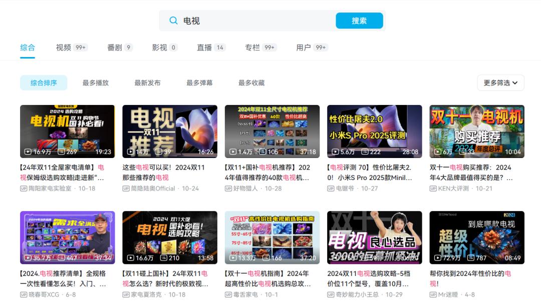 临近双十一,哔哩哔哩UP主电锯爷的主页,已被海信、TCL、各国产品牌创维直播预约填满。