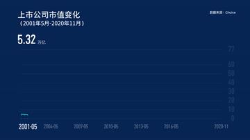 沪深两市总市值也在不断突破:2000年突破5万亿元,2006年突破10万亿元,2007年连续突破20万亿元,30万亿元。截至2020年12月30日,沪深两市总市值已达80万亿元。今日,上交所总市值超过50.92万亿元,深交所总市值超过30.09万亿元,几乎等于2020年的高点。