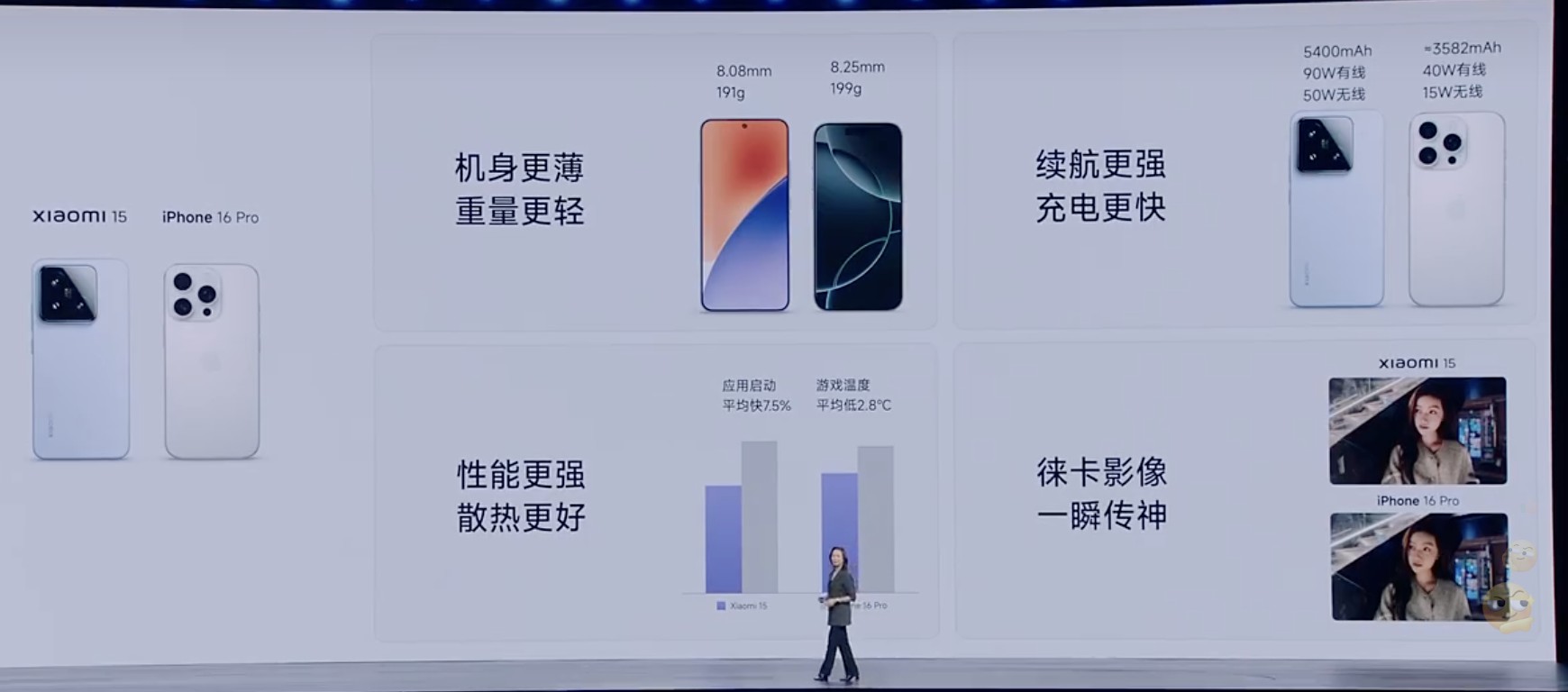 小米在新闻发布会上 15 和iPhone一起 16 Pro对比