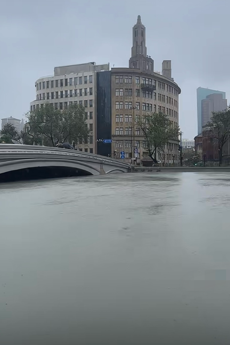 同时,记者了解到,苏州河近两天处于高潮位置,涨潮时水位达到4米以上,亲水平台将被淹没。相关部门已经提前拉好了警戒线,整体安全可控,防御标准达到5.20米。目前苏州河黄浦江水闸已经开启,水位将逐渐下降。