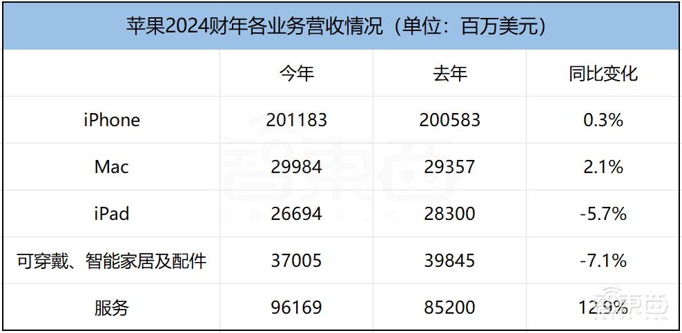 智东西11月1日消息,刚刚,除自然年第四季度至2024年第三季度外,苹果公司2024财年数据正式发布(对应自然年第四季度至第三季度)。年收入近三万亿元,年净利润超过6600亿元,同样值得注意的是,苹果CEO库克回答了一些关键问题。