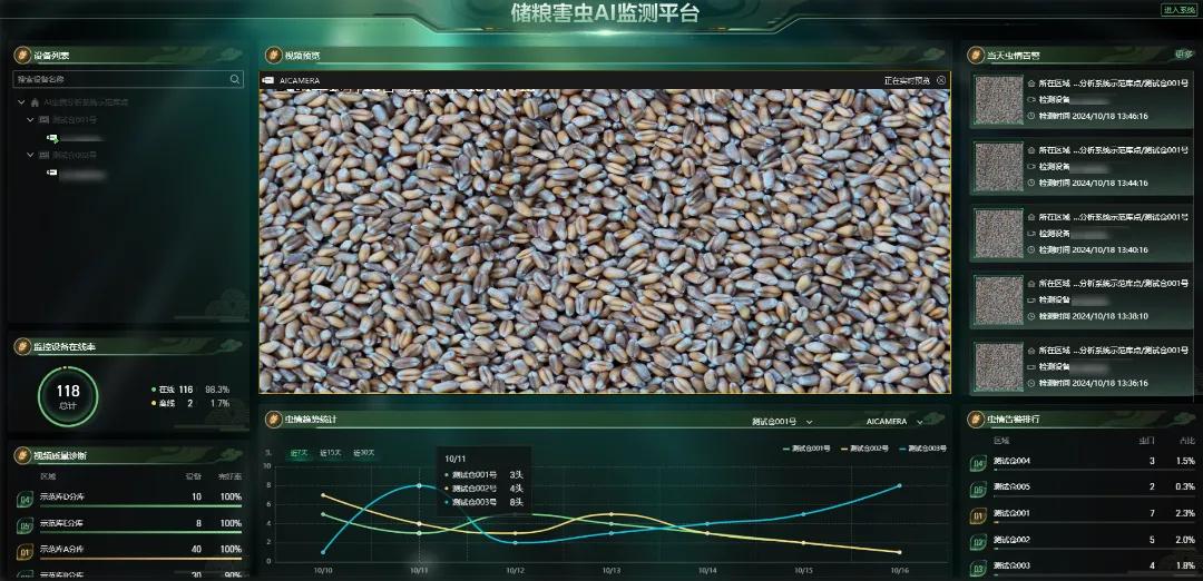 除能源、制造等行业外,在农业领域,海康威视与中储粮成都储藏院联合开发了AI虫情监测分析终端,通过AI识别算法实时反馈400万像素白光补光球机害虫数量,促进粮仓及时识别和预警害虫威胁,确保粮仓安全。
