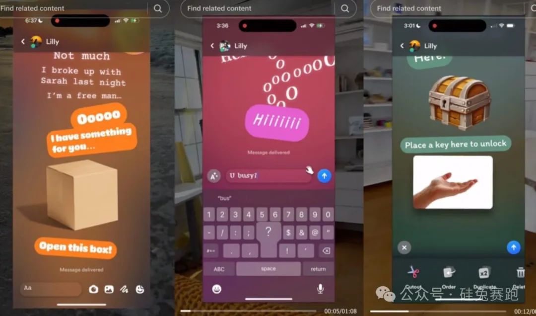 根据它发布的演示视频,聊天不再局限于蓝色和绿色的新闻气泡。相反,五颜六色的新闻可以漂浮在页面上,并辅以照片、图形、贴纸和GIF、图画、装饰背景等多种视觉元素,这些元素与用户使用各种字体、风格、图形等建立Instagram Story非常相似。