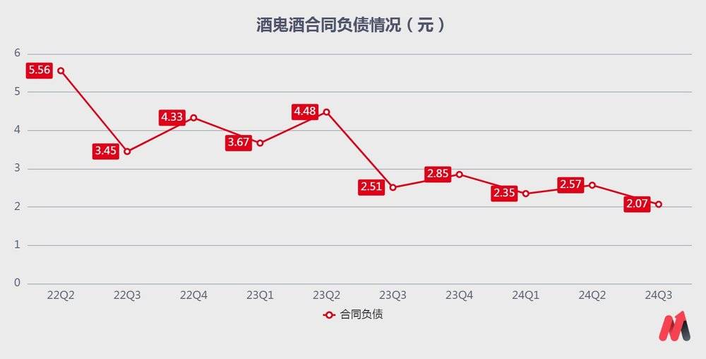 酒鬼酒合同负债减少是经销商“量价齐跌”的直观体现。第二季度末,酒鬼酒合同负债余额为2.6亿元,比去年同期下降1.9亿元;截至Q3,合同负债进一步减少到2.07亿元。
