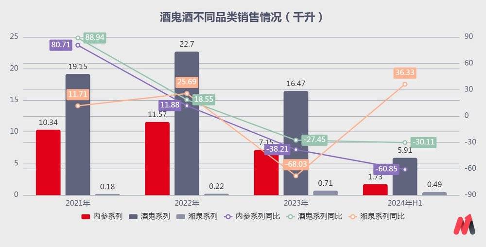 醉鬼系列收入为5.91亿元,比去年同期下降30.11%;销售额、吨价同比下降29.35%和1.08%,略好于内部参考系列。