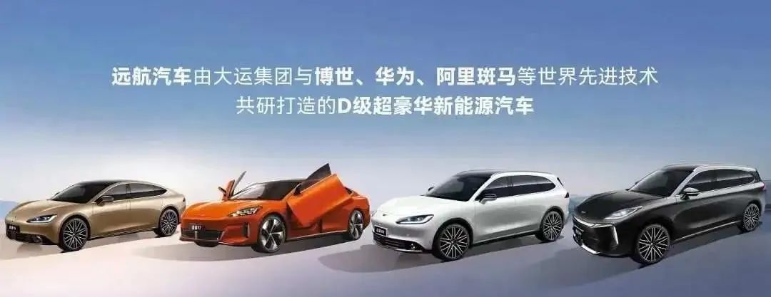 远航汽车是大运集团旗下的高端新能源汽车品牌。它成立于2022年8月。它一出生就与华为、阿里巴巴、博世等头部供应商合作,拥有造车资质和造车经验。因此,远航汽车诞生了一把金钥匙。