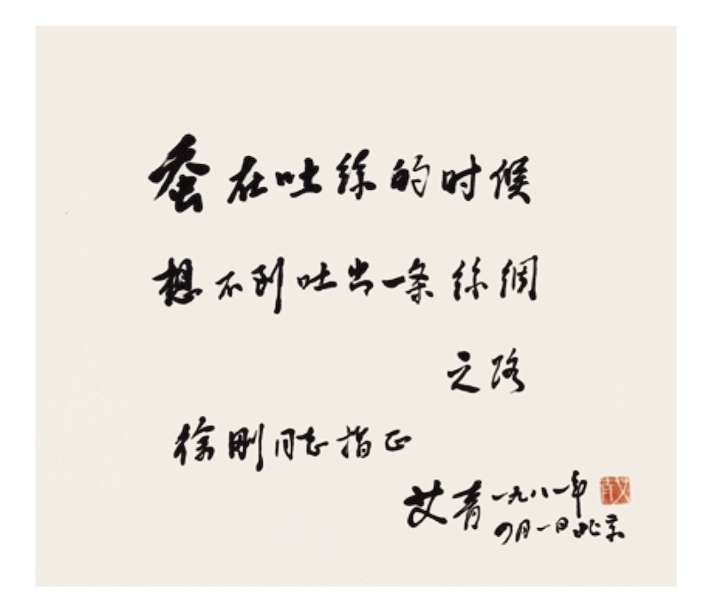 艾青:蚕在吐丝的时候 没想到会吐出一条丝绸之路。( 1981年)