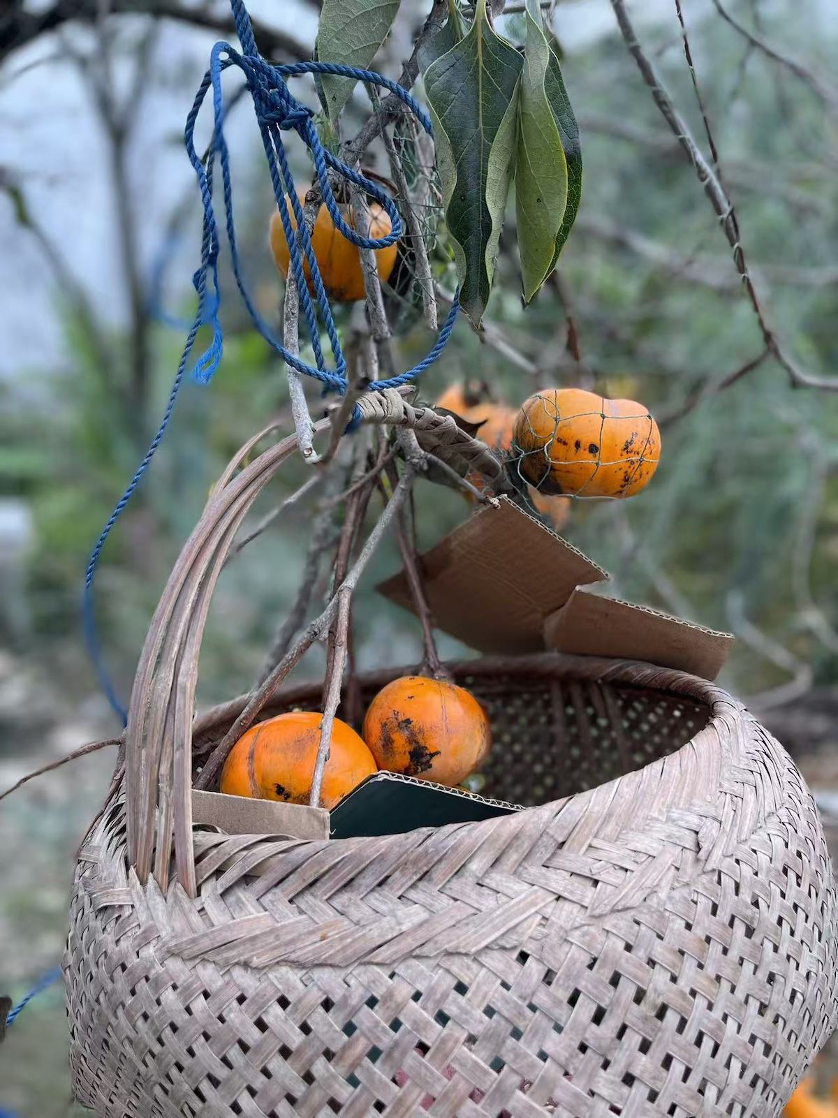 竹篱外,静立的时候,诗人指着杂沟旁的老柿子树说,小时候,每当柿子成熟,伯父摘下柿子,总是让他先吃。在今天的老房子里,有他伯父的后代,他的三嫂和侄女。