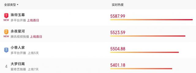 刚刚开播一天,这部《珠帘玉幕》,一举冲到全网热榜第一,将近期热播的其他几部剧都推下去。