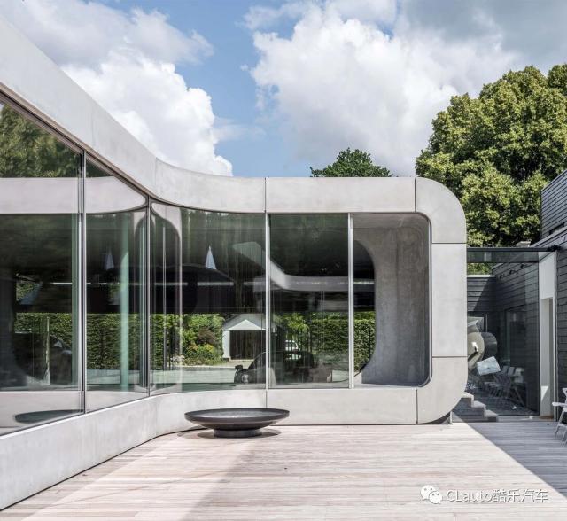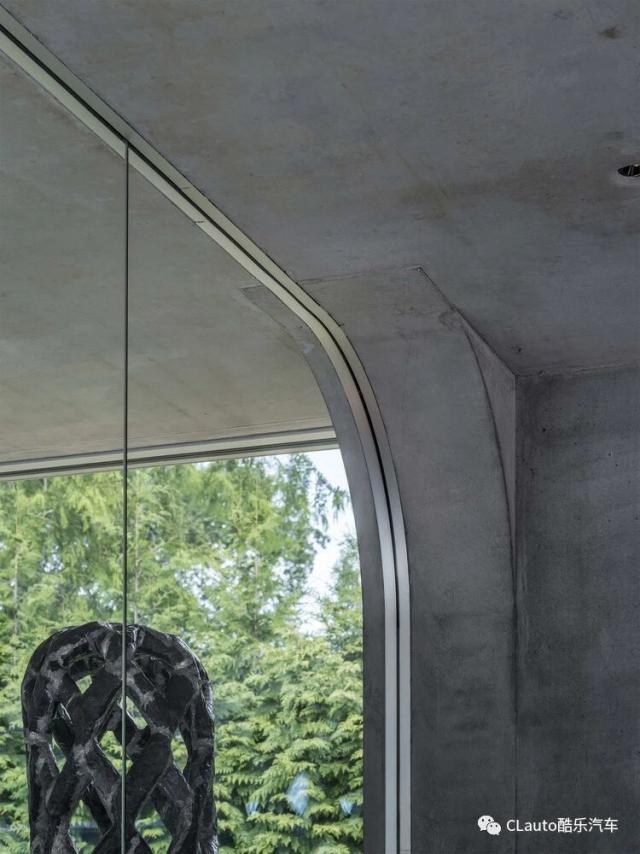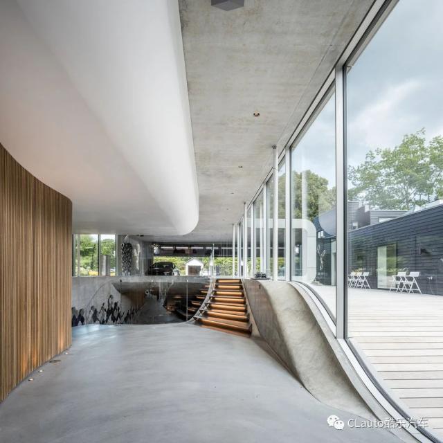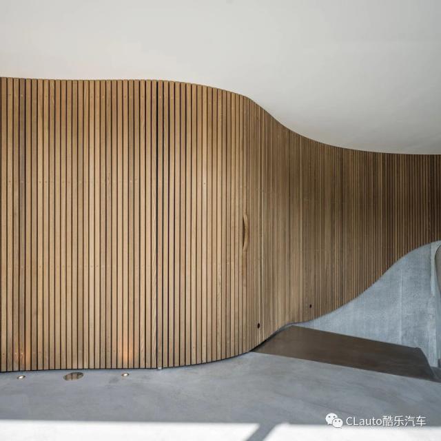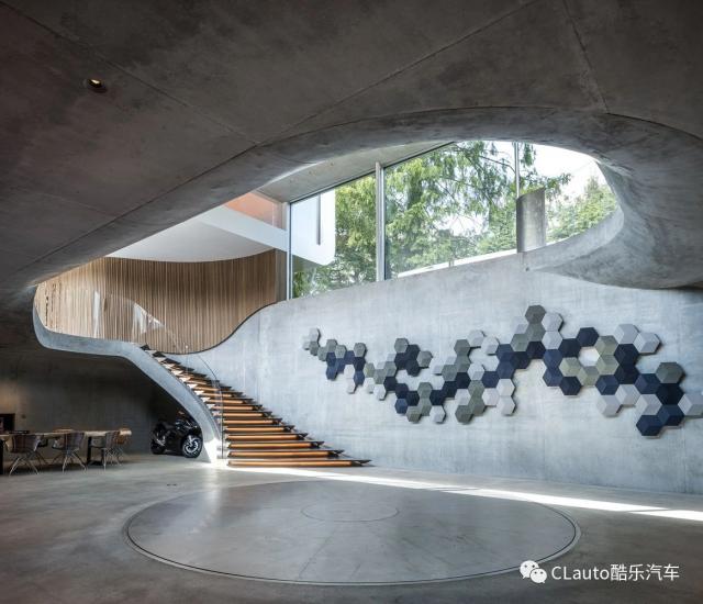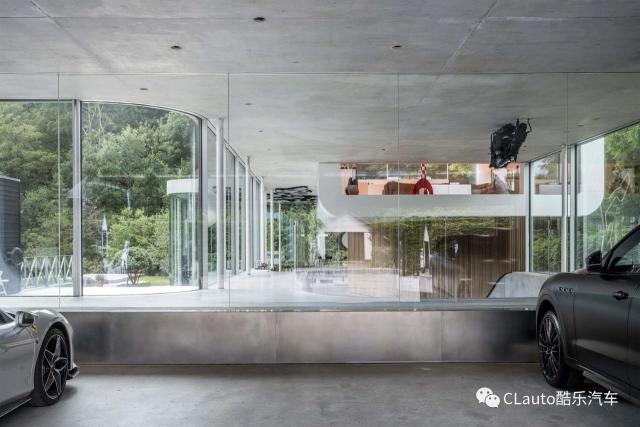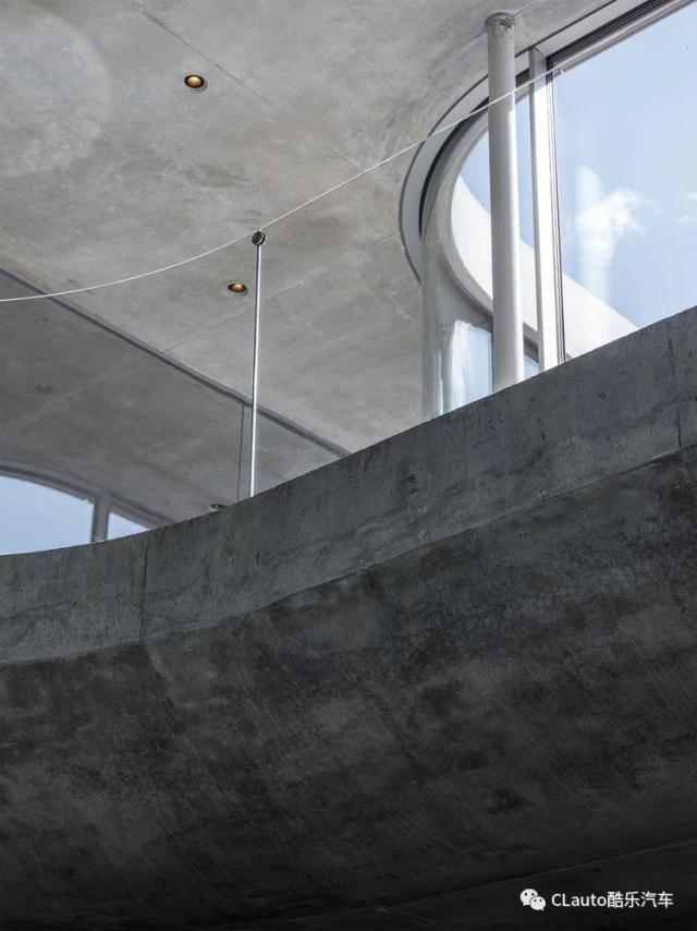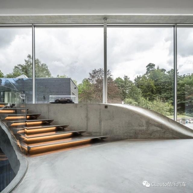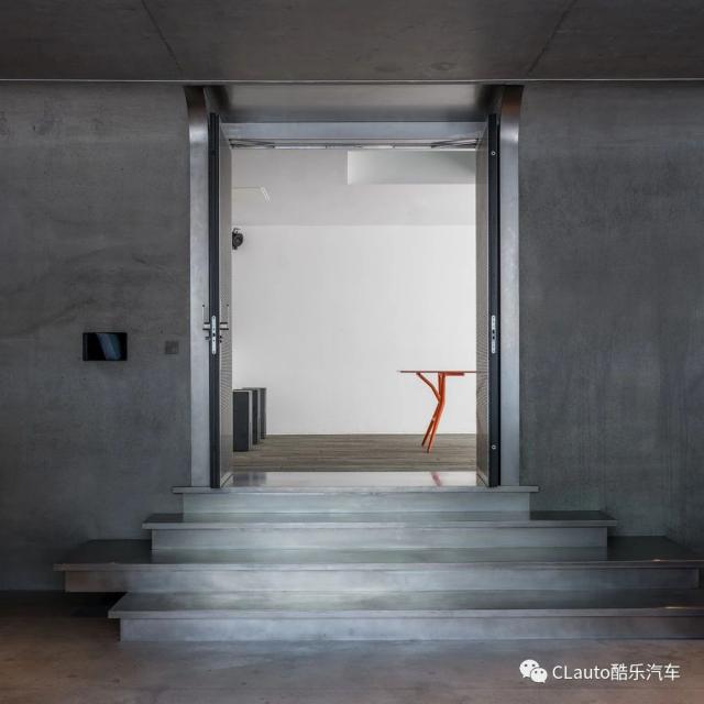 这里最独特的是车主收藏的经典跑车。这个空间在材料使用上是最少的,只有一些原材料。 —— 混凝土、钢材、玻璃和木材,这些都成为展览空间的背景。