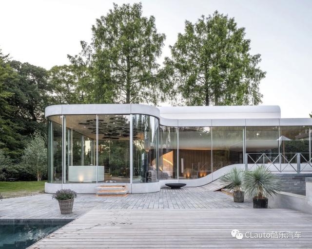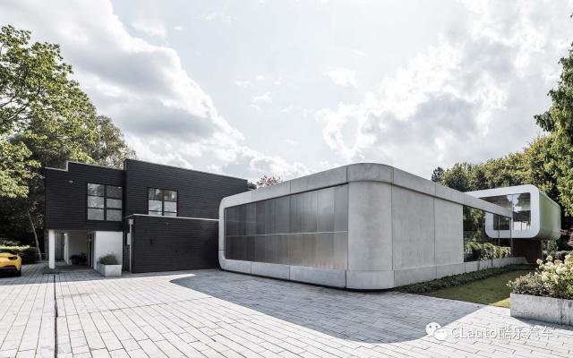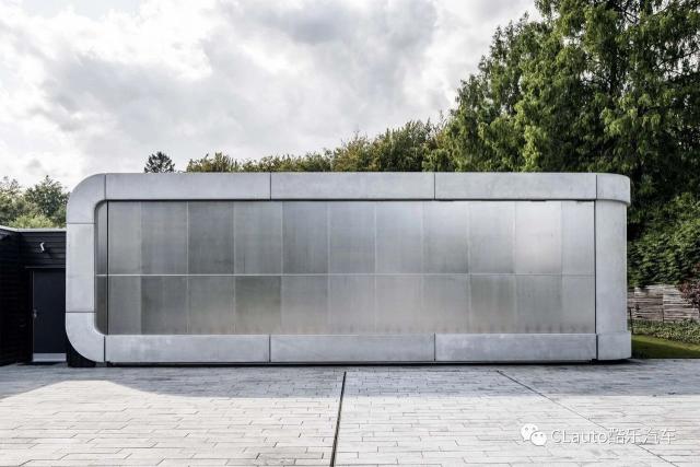 开放式底层空间和外部自然环境也得到了延伸,而车库则隐藏在一个地方 10 在米宽的液压机库大门后面,大门打开后,整个车库都显示出来。